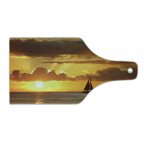 Hero image 0 of Sailboat Cutting Board, Last Rays of Sun over Ocean Sail Boat Freedom Relaxing Mediterranean, Tempered Glass Cutting and Serving Board, Wine Bottle Shape, Marigold Dark Orange, by Ambesonne, 0 of 1