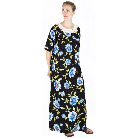 Sakkas Maha Soft Womens Short Sleeve Nightgown Sleep Dress Breathable No Bunch Up - Black-multi - XLSakkas Maha Soft Womens Short Sleeve Nightgown Sleep Dress Breathable No Bunch Up Black multi XL