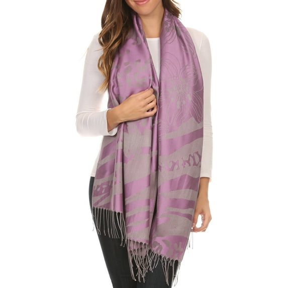 Sakkas Reiley Long Wide Floral Printed Patterened Fringe Pashmina Shawl / Scarf - Lavender / Grey - OSSakkas Reiley Long Wide Floral Printed Patterened Fringe Pashmina Shawl Scarf Lavender Grey OS
