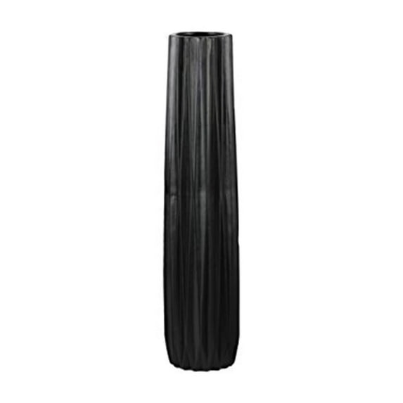 Saltoro Sherpi Large Tall Vase With Ribbed Design Body - Black -