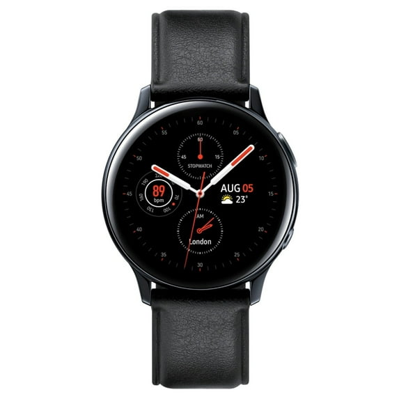 The all-new Galaxy Watch Active2 now comes with a bigger customizable screen and fresh new look. It gives you precise health insights when you need it, while keeping you fully connected. Whether you are out for a run or pushing through your next deadline the Galaxy Watch Active2 will keep you at your optimal performance inside and out. Choose your look and your comfort for a wellness partner you?ll want to keep on 24/7. Galaxy Watch Active2 comes customized from day one, starting with your choice of Bluetooth or LTE model, 44mm or 40mm, stainless steel or lightweight aluminum design, and straps galore. Maximize your screen space with an uninterrupted view on a sleek body fitted with a touch bezel for quick control. Galaxy Watch Active2 features an enlarged display with a pure black screen and a border that's hardly there for more space to get the insight you need. Express yourself with a watch face that fits your look and mood. When you snap a picture of your outfit for the day Galaxy Watch Active2 will put together a watch face to match. Complement your style with a watch face that matches the color and material of your strap. When you buy a watch strap and scan the QR code on the package you'll get a link to Galaxy Store to download a watch face that fits it. Galaxy Watch Active2 tracks your movements so you can just slip it on and get working out. With swimming added to automatic tracking you now get seven exercises, while manual tracking works for all activities for dozens you can track. Running coach function gives you actionable advice in real time. Be sound in body and mind with a watch that cares for both. Use the stress tracker to watch your stress levels when you're feeling tense and follow the suggested guided breathing exercises to get some peace of mind. Monitoring your health is at the core of Galaxy Watch Active2 with a full eight photodiodes on the rear side of a new curved design that molds to your wrist. Health monitoring keeps an eye on your heart rate and sends you an alert when it goes above or below normal levels. Get a jump on life with a smart assistant on your wrist. Control your camera to enrich the shooting experience, view and like on social media, and translate on the go. Newly added On-going Icon displays running apps on the watch face for easy access, and you can even catch incoming calls with Wi-Fi. Take your contacts, messages and music with you on an LTE-powered life assistant that lets you leave your phone behind. Go on a run with the peace of mind of being connected and not weighed down. Keep your music streaming as you go or download ahead of time for areas with low connectivity. Take your Galaxy Watch Active2 out for the day with a battery that lasts the day and more with normal use. Back home, just lay it on the compact magnetic wireless charger to bring it back to full, no charging jacks or wires required. Take your watch along on the road less traveled. Galaxy Watch Active2 goes where you go with an IP68 and 5ATM water and dust rating plus military grade durability to handle a range of conditions, so you can keep it on to go farther and experience more. Bring enhancement to your life with apps ranging from the Galaxy lineup to a large variety of downloadable 3rd party apps. Download apps to create your own personal lineup for smart advice on the fly that you can pull up without leaving your wrist. Wide compatibility with both Galaxy and non-Galaxy.