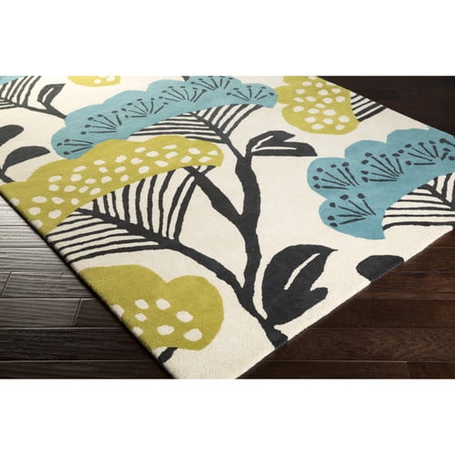 Features: -Collection: Sanderson. Technique: -Tufted. Primary Color: -Olive/ Cream/Black/Aqua. Product Care: -To ensure for a more lasting quality, steps must be taken during care and cleaning to protect the durability of your polished piece. High powered vacuums, more often than not, pull out of the back of rugs, causing sprouts and a generally unattractive appearance to a once flawless rug. To counter this effect, place your vacuum starting at the edge of the rug, using a low setting and high elevation, or if possible, use hand held attachments when cleaning. As well, over time, the fibers within your piece will unavoidably begin to weaken. When this occurs, regularly, yarn will poke out from the edges of your rugs, and in order to prevent pulling, it is crucial that you do not simply pull the yarn out, but rather, cut these weak fibers using scissors to maintain the impeccable quality of your rug. As well, if spills occur, it is crucial that you immediately tend to the area, blo