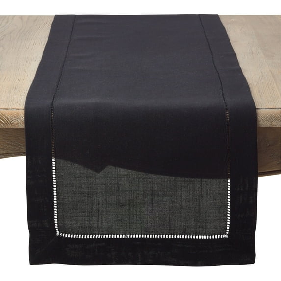 Saro Lifestyle Rochester Collection Hemstitch Table Runner Black 16" x 72"