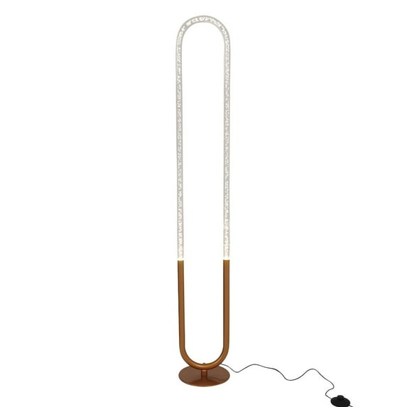 Elegant Loop LED Floor Lamp Elevate your living space with the Elegant Loop LED Floor Lamp. Combining modern design with functional brilliance, this lamp features a sleek U-shaped frame with integrated LED lights, perfect for creating a warm and inviting atmosphere. Its compact base and unique style make it an eye-catching addition to any room.