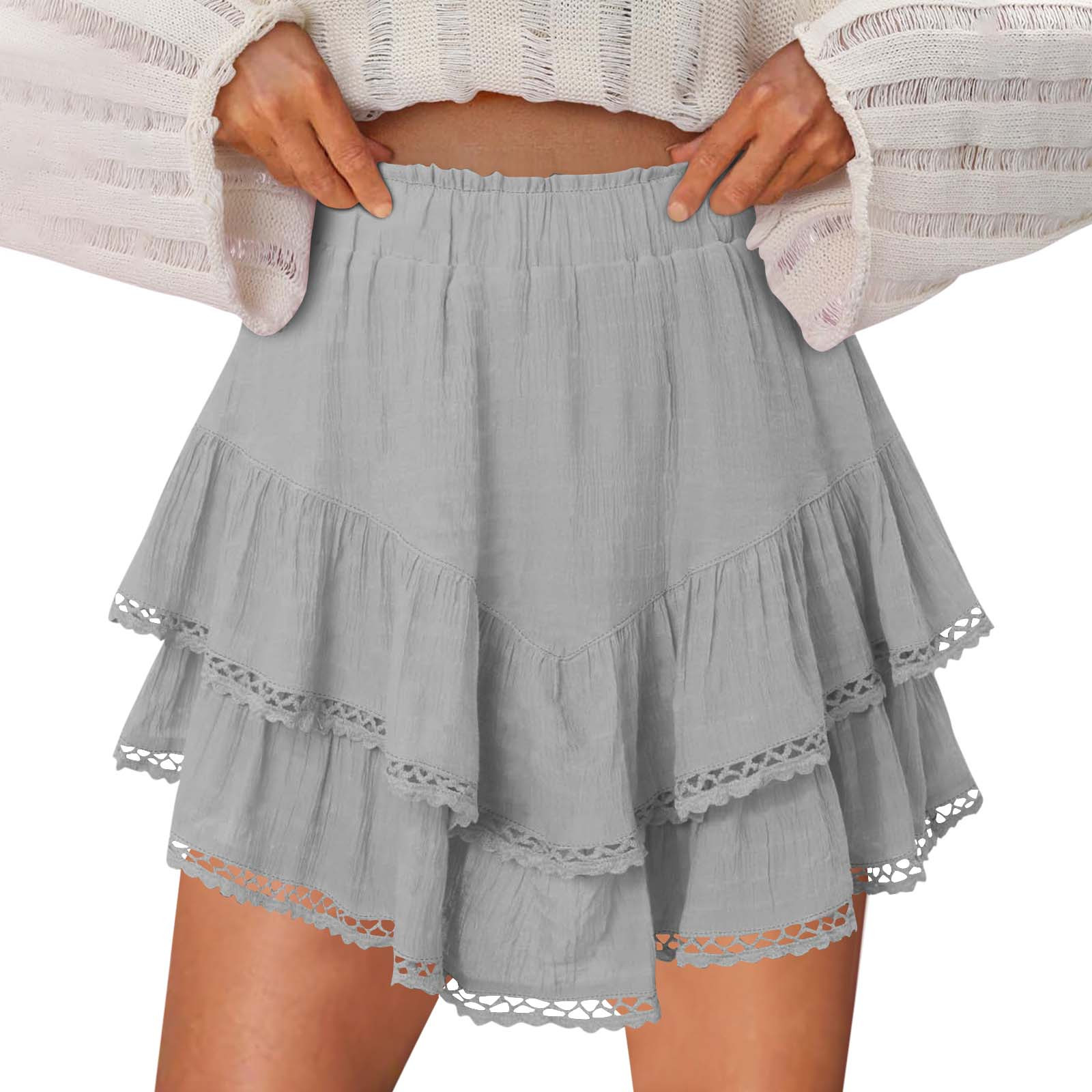 - Savings Olyvenn Flowy Shorts for Women Ruffle Skorts Mini Skirts High Waisted Teen Gilrs Tennis Skort Summer Shorts Gray XL