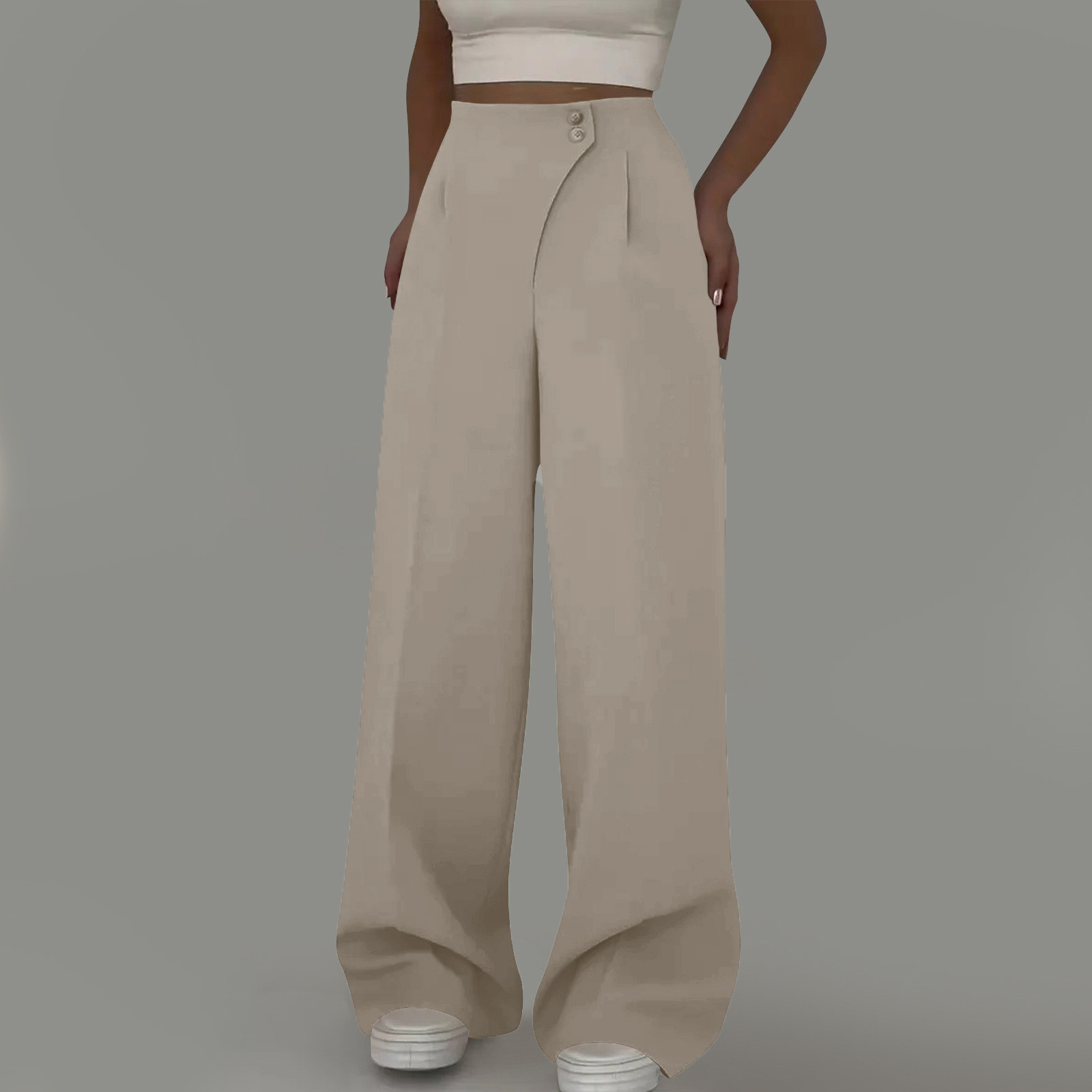 Fashion Olyvenn Women High Waist Palazzo Pants Casual Wide Leg Trousers Button Down Loose Work Office Business Suit Pant Pockets Beige XXL