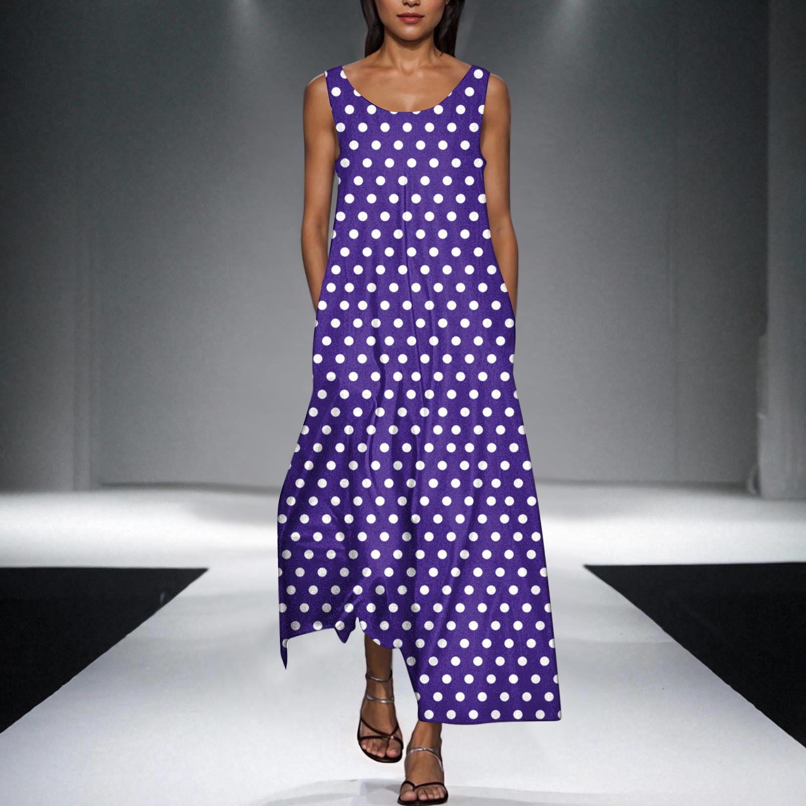 Hero image 0 of Trendy SMihono Women's Ploka Dots Flowy Maxi Dress with Pockets, Elegant 2025 Summer Loose Crew Neck Sleeveless A-Line Swing Dresses Purple XXL, 0 of 5