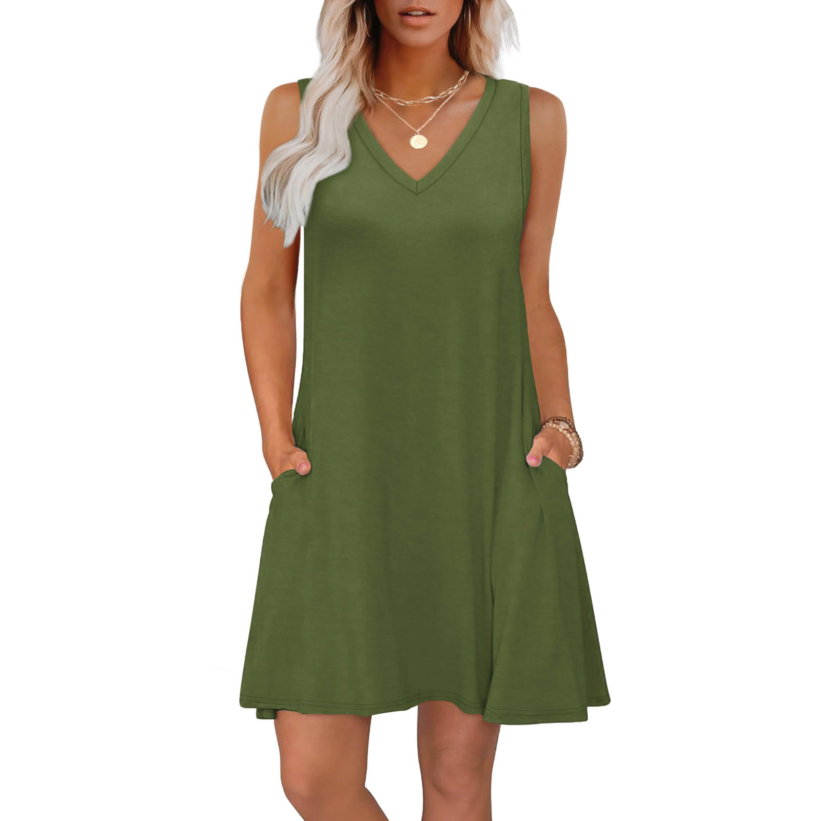 Hero image 0 of Stylish SMihono Womens Summer Dresses Loose Fit V Neck Sleeveless Sundresses Vacation Beach Hawaiian Dress with Pockets Army Green L, 0 of 5