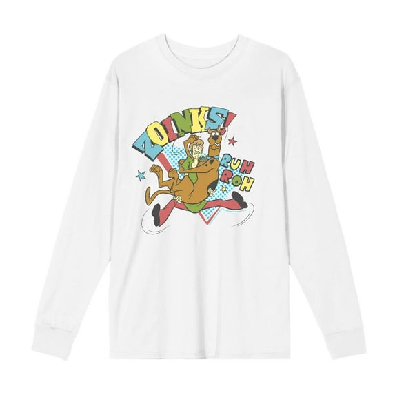 Scooby-Doo Zoinks Ruh Roh Adult White Crew Neck Long Sleeve Tee-XXL