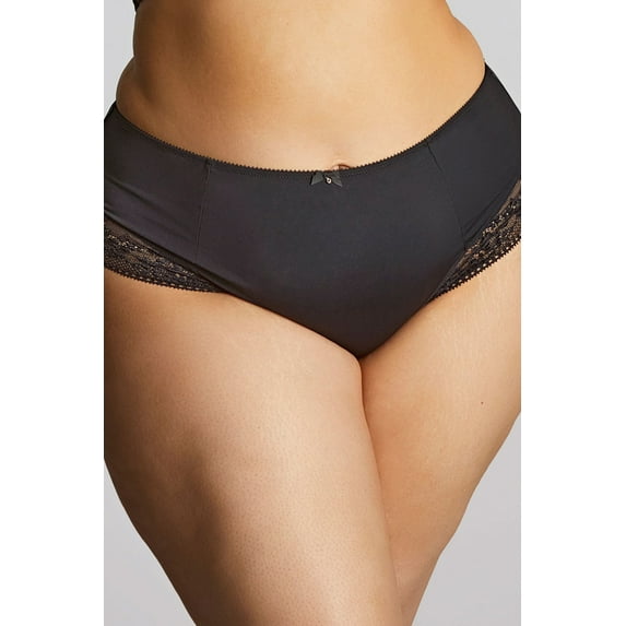 The Sculptresse by Panache Roxie Highwaist Brief (9582) blends comfortable fabric with sultry black lace for an everyday high-waisted panty that still flatters. Features scalloped embroidered trim and full rear coverage with semi-sheer black lace detailing at front and back leg openings. Pairs perfectly with the Sculptresse by Panache Roxie Plunge Underwire J-Hook Bra (9586), sold separately.