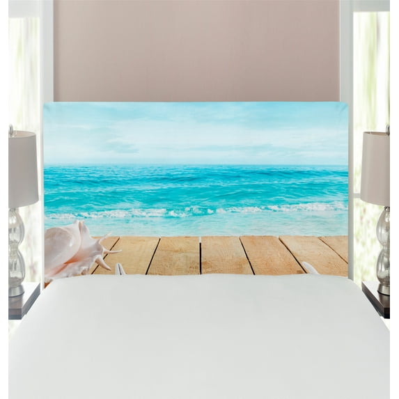 Hero image 0 of Seashells Headboard, Wooden Boardwald Sunshine Vacations Beach Theme, Upholstered Decorative Metal Bed Headboard with Memory Foam, Twin Size, Blue Beige, by Ambesonne, 0 of 4