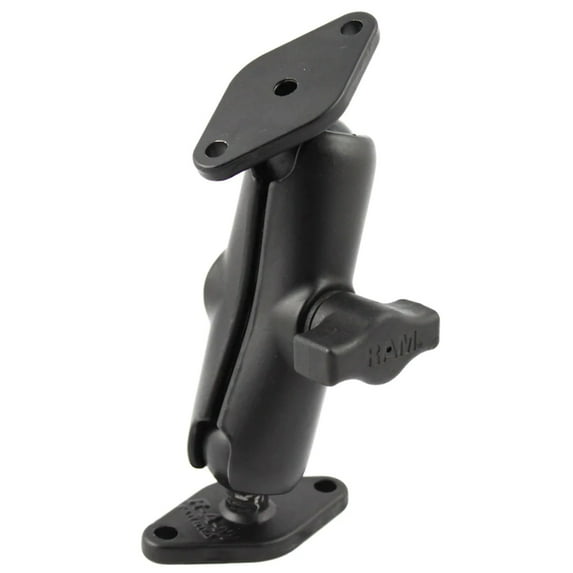 RAM-B-102U RAM Mounts Double Ball Diamond Plate Mount Overview the RAM-B-102U consists of a double socket arm and two diamond bases. The diamond bases measure 2.43" x 1.31" diamond base and contain two holes 1.912" from center to center, positioned at both ends of the diamond base. The hole pattern found on the diamond bases will connect to many RAM cradles, as well as third party cradles including mounts with the industry standard Amps hole pattern. Designed into the mount is a 1" diameter patented rubber ball and socket system with adjustment points at both socket ends of the arm. Product dimensions Overall Height: 5" Socket-to-socket length 3" Hole pattern 2-Hole Amps: 1.912" Ball/Socket size B Size (1") Weight capacity 2 lbs. Materials Marine-grade aluminium. Packaging type Poly Bag. Weight 0.45 lbs.