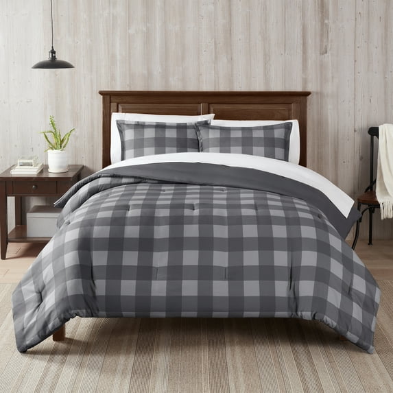 Serta Simply Clean Alex Buffalo Check Plaid 7-Piece Bedding Set, Queen