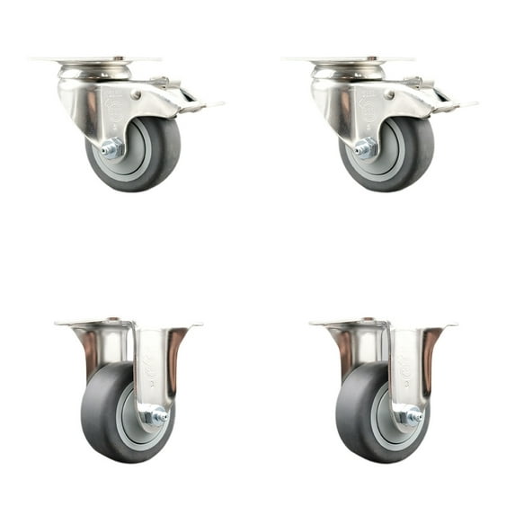 3.5 Inch 316SS Thermoplastic Rubber Swivel Plate Caster Set 2 Lock Brake 2 Rigid