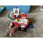 Ready, set, go, go with the Go! Go! Smart Wheels® Rescue Tower Firehouse™. Cruise around the fire station and down the speedy ramp. Fuel first words and motor skills with a talking fire truck and sturdy track set that drive development and imagination with SmartPoint® tech. The Dalmatian dog, fire, fire extinguisher and fire hose play pieces encourage pretend play. Zoom over four interactive SmartPoint® areas to hear sounds, music, first words and phrases about feelings and being a firefighter. This fearless fire truck is coming to the rescue! Explore five movable pieces to strengthen fine motor skills as kiddos flip the gates, open the garage door, pump the fire hydrant and more. Sound the siren and let’s go! Collect more Go! Go! Smart Wheels® SmartPoint® cars and track sets to explore unique responses on each SmartPoint® (sold separately). Intended for ages 1.5+ years. Requires 2 AAA batteries. Batteries included for demo purposes only. New batteries recommended for regular use. Child 3.465 lbs 21.4567W x 15.0787H x 15.9842D in