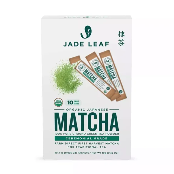 Jade Leaf Ceremonial Grade Matcha Green Tea Single Serve Stick Packs - 10ct