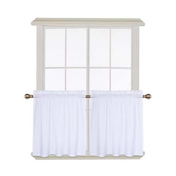 Hero image 0 of Shininglove Cafe Curtains 24 inch Length, Embossed Textured Soft Microfiber Kitchen Tier Curtains for Bathroom, White, 30"W x 24"L, 2 Pack, 0 of 6