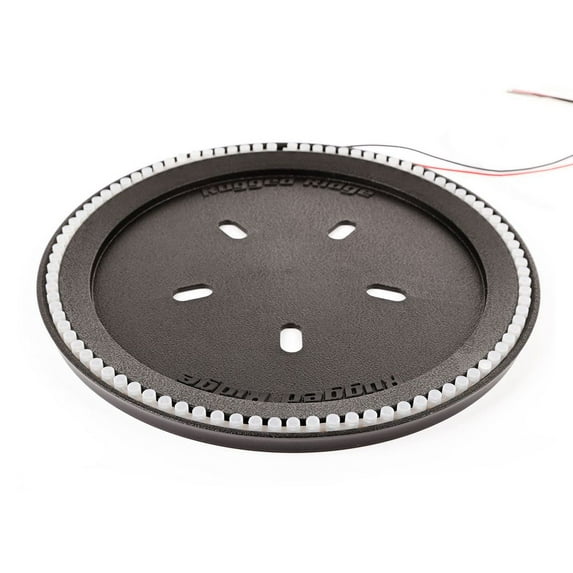 If you have "lifted" your Jeep or have a larger-than-stock spare wheel and tire on the back, chances are your high-mount third brake light has either been deleted or is no longer as visible as it once was, making it less than effective. Rugged Ridge has the perfect solution to restore your Jeep to factory safety standards AND increase the cool factor at the same time! The Rugged Ridge Third Brake Light LED Ring adds a surprisingly brilliant ring of torch-red LED's behind your spare tire- guaranteed to grab the full attention of all who are near. Designed to work with various rim diameters from 15 to 20-inches on Jeep CJ / YJ / TJ and JK models having either a 5 lug bolt patterns with 4.5, 5 or 5.5" spacing. Fitted with waterproof connectors, this Third Brake Light LED Ring is impervious to the elements for consistent all-weather performance. Imagine a world where nobody can ever say "I didn't realize he was stopping". Patent Pending