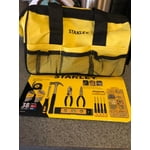 The Stanley has everything you need for work and projects around the house. It can be kept in your home or office to help with picture hanging, measuring, fastening, and much more as it keeps your tools in one handy accessible place. This mixed tool set is ideal to take on the go or to keep in your camper, on a boat, or in your vehicle for easy access when you need a quick fix. Whether it's your sink, hammering a nail, or tightening a bolt, Home Repair Tool Set with Bat has it all. The tools are sturdy and durable made with vanadium construction for high-quality use while the bag has pockets on the front and place for everything.