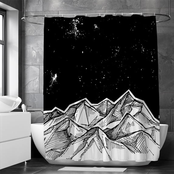Shower Curtain Night Star Mountain Meteor Bathroom Curtain No Punch