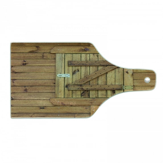 Hero image 0 of Shutters Cutting Board, Closed Wooden Shutters Plank Rough Grunge Countryside Classical Design Print, Tempered Glass Cutting and Serving Board, Wine Bottle Shape, Brown Pale Brown, by Ambesonne, 0 of 1