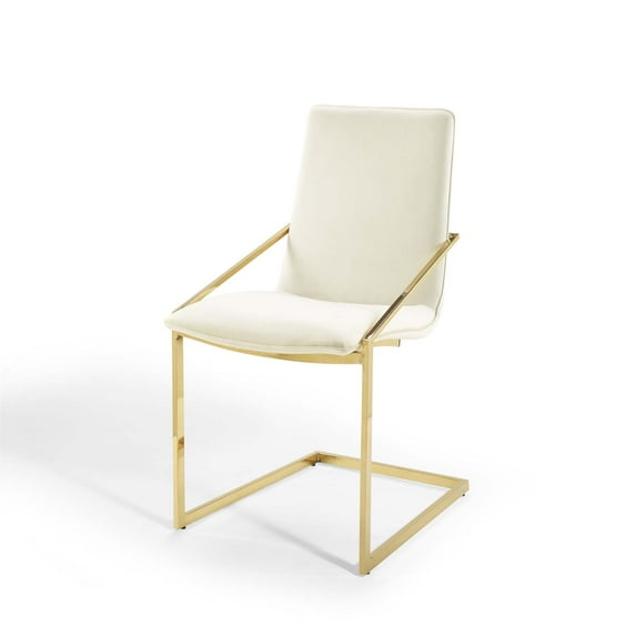Side Dining Chair, Velvet, Metal Steel, Gold Ivory White, Modern Contemporary Urban Design, Kitchen Room Cafe Bistro Restaurant Hospitality