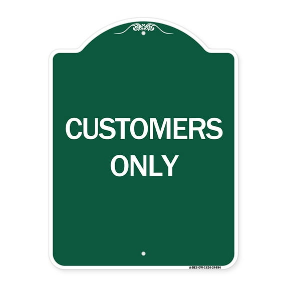 SignMission A-DES-GW-1824-24494 18 x 24 in. Designer Series Sign - Customers Only, Green & White
