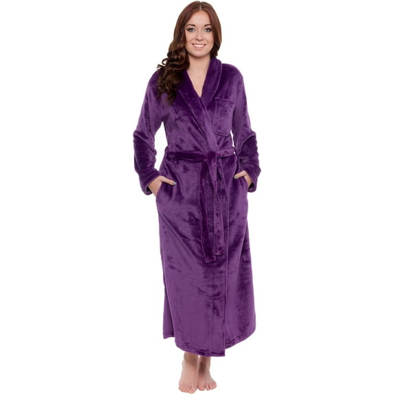 Silver Lilly Womens Robe - Plush Fleece Bathrobe - Full Length Robe with Shawl Collar - Dark Purple, 3X-Large