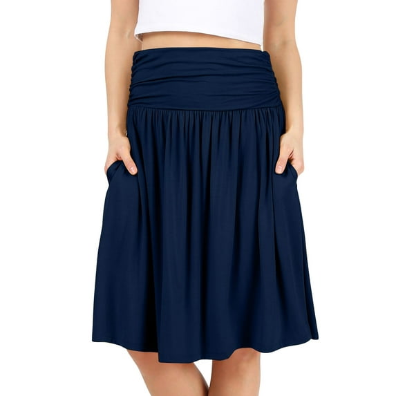 Hero image 0 of Simlu Womens Regular and Plus Size Skirt with Pockets Below The Knee Length Ruched Flowy Skirt Midi Skirt For Women, 0 of 6