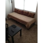 Serves it's purpose. Enough room for a grown adult male or female. May need to replace mattress after a while if constantly using night after night, but perfectly ideal and provides enough comfort for visitors using sparingly. Would be even nicer if this mattress provided some sort of strap to secure the mattress to the frame to prevent slipping.