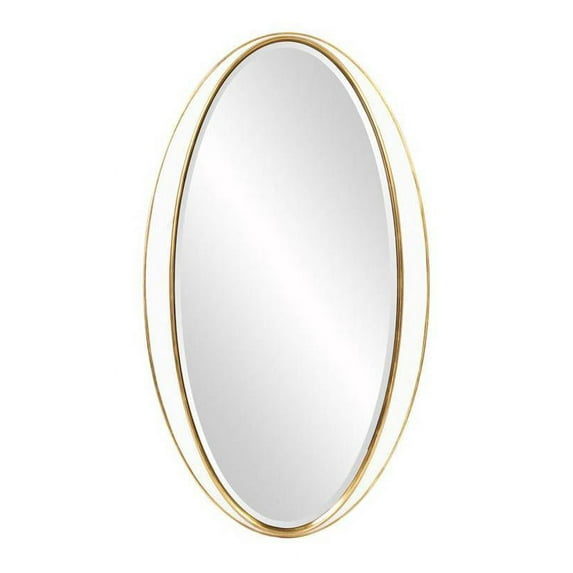 Our Rania Mirror is a striking piece featuring a simple oval frame. The finish is what makes this mirror stand out from all the rest. The main frame is finished in a brilliant glossy white that is trimmed on the inner and outer borders in a lovely gold leaf. It is a perfect focal point for an entryway, bathroom, bedroom or any room in your home. D-rings are affixed to the back of the mirror so it is ready to hang right out of the box in either a horizontal or vertical orientation! The mirrored glass on this piece is beveled adding to its beauty and style.
