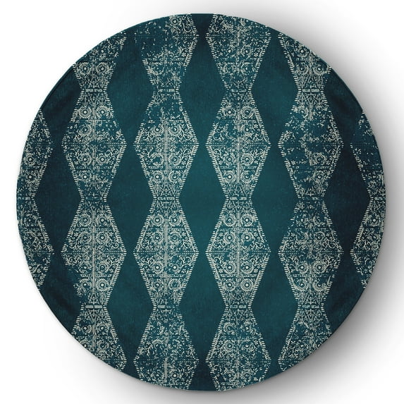 Simply Daisy 5' Round Teal Pyramid Stripe Chenille Rug