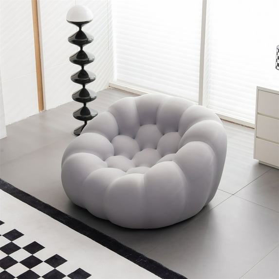 Single Lazy Sofa Couch, Upholstered Bubble Floor Sofa Bean Bag Sofa with 3D Textile Material, Modern Sleeper Sofa Curved Leisure Sofa Couch for Living Room Bedroom, 43.3"D x 47"W x 27.5"H, Gray
