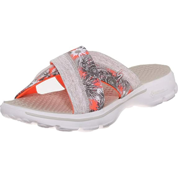 Skechers Performance Womens Go Walk Fiji Flip Flop,Natural Coral Flower,7 M US