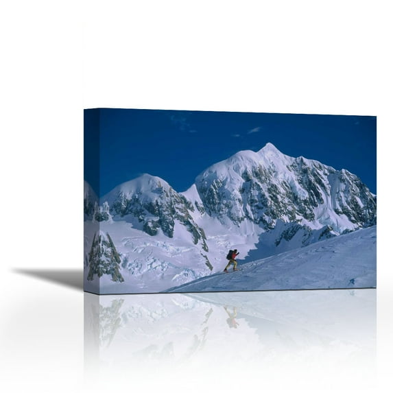 Skiier nearing Von Bulow Peak, Mount Tasman behind, Westland NP, New Zealand - Contemporary Fine Art Giclee on Canvas Gallery Wrap - wall décor - Art painting - 36 x 24 Inch - Ready to HangSkiier nearing Von Bulow Peak Mount Tasman behind Westland NP New Zealand Contemporary Fine Art Giclee Canvas Gallery Wrap wall d cor painting 36 x 2