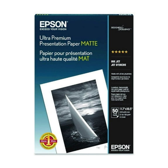 464.9 out of 5 Stars. 46 reviewsEpson Ultra Premium Presentation Paper Matte 17" x 12" x 1", 50 Sheets, White $65.14