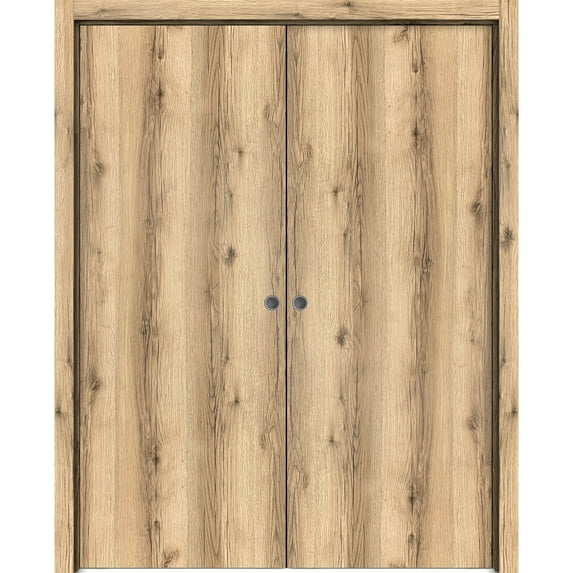 Hero image 0 of Sliding French Double Pocket Doors 48 x 84 inches | Planum 0010 Walnut | Kit Trims Rail Hardware | Solid Wood Interior Bedroom Sturdy Doors, 0 of 6