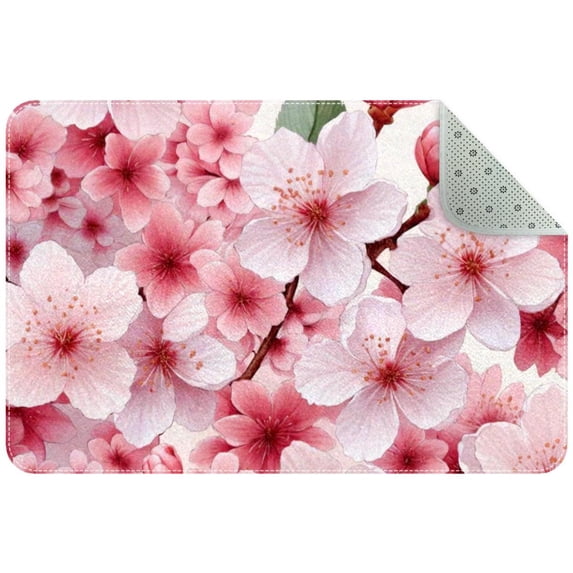 Small Washable Kitchen Rug, Pink Cherry Blossoms Cute Pattern Indoor Door Mats for Entryway, Non Slip Area Rug Floor Carpet for Entrance Bathroom Bedroom