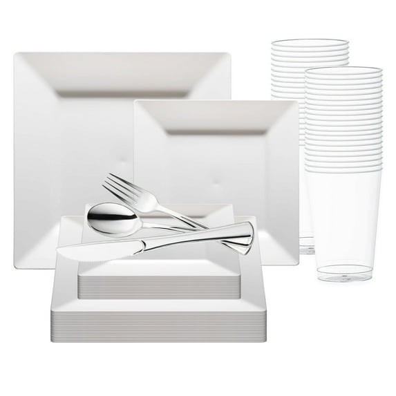 Smarty White Square Plastic Wedding Value Set (60 Guests)