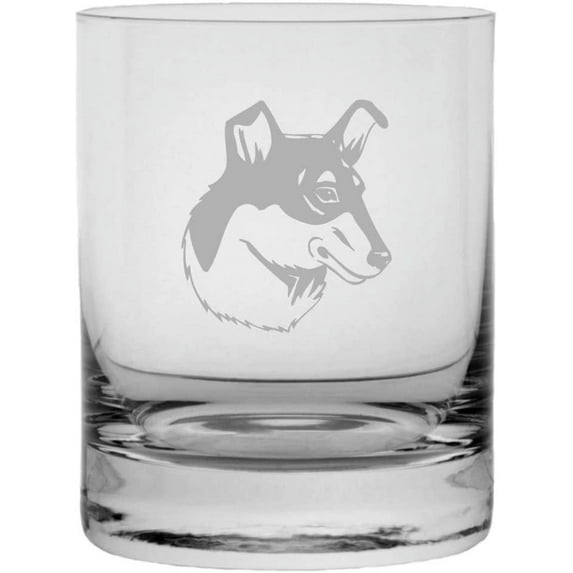 Smooth Collie Dog Themed Etched 11oz Crystal Rocks Whisky Glass