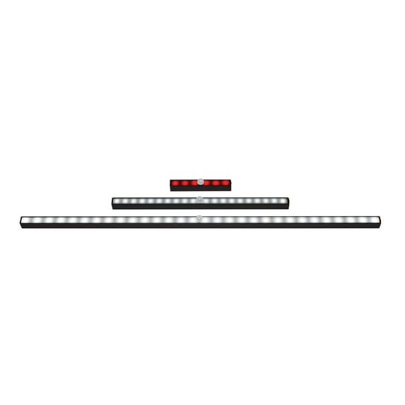 Ideal for gun safes, closets, cabinets, drawers and corridors, this light bar features long-lasting LED lights. With ON/OFF/AUTO modes, the light bar can be set to illuminate when motion is detected. Easy to install, these lights require AAA batteries (not included).Specifications:- Length: 25"- 30 LED- Color: White - Light Output: 110 lumens- Battery: AAA (1)