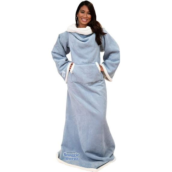 SNUGGIE SHERPA- The New & Improved Wearable Blanket That Has Sleeves, Warm, Cozy, Super Soft Sherpa, Functional Blanket with Sleeves & Pockets for Adult, Women, Men – Dusty Blue. The new & improved blanket with sleeves – SNUGGIE SHERPA keeps your hands free and your feet warm. For over 10 years, Snuggie has provided functional relaxation for everyone. This wearable blanket is perfect to keep you comfy whether you are studying for a big exam, gaming, reading a book, or just watching TV relaxing on the couch. SNUGGIE SHERPA is also machine washable, so even if you accidentally drop your favorite, just toss it in the wash and resume relaxation!