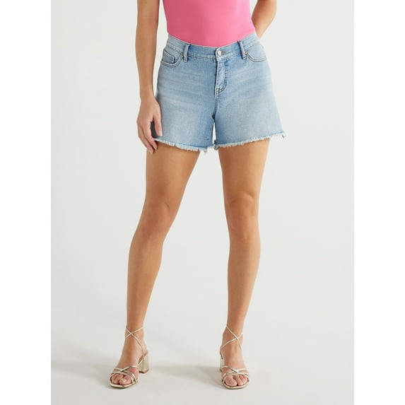 Sofia Jeans Women's Lila Mid Rise Frayed Hem Shorts, 5" Inseam, Sizes 2-20