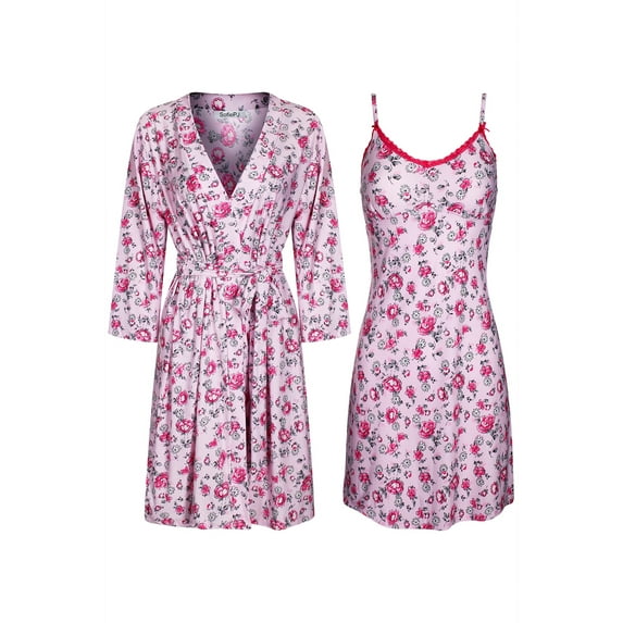 Hero image 0 of SofiePJ, Women's, Printed Sleepwear Chemise and Robe 2PC Set, Hot Pink, L, 0 of 1