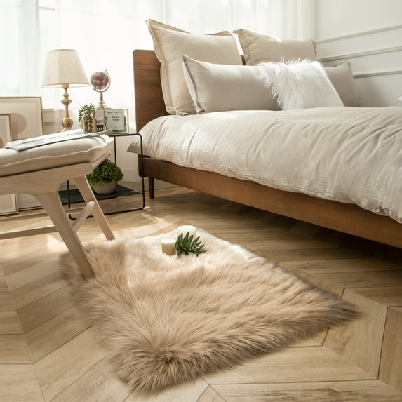 Soft Fluffy Faux Sheepskin Fur Area Rug Shag Plush Mat Home Decorative, Rectangle Beige, 2 x 3 feet