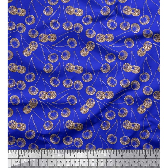 Soimoi Blue Poly Georgette Fabric Cherries Fruits Printed Fabric 1 Yard 52 Inch Wide