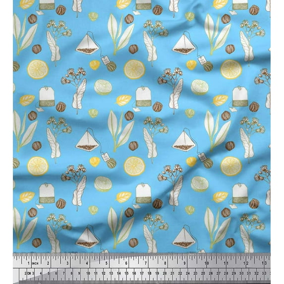 Hero image 0 of Soimoi Blue Silk Fabric Tea Bag,Herbs & Lemon Slice Vegetable Printed Craft Fabric by the Yard 42 Inch Wide, 0 of 1