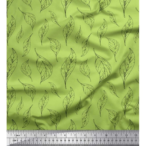 Hero image 0 of Soimoi Green Cotton Jersey Fabric Pear Leaves Printed Fabric 1 Yard 64 Inch Wide, 0 of 3