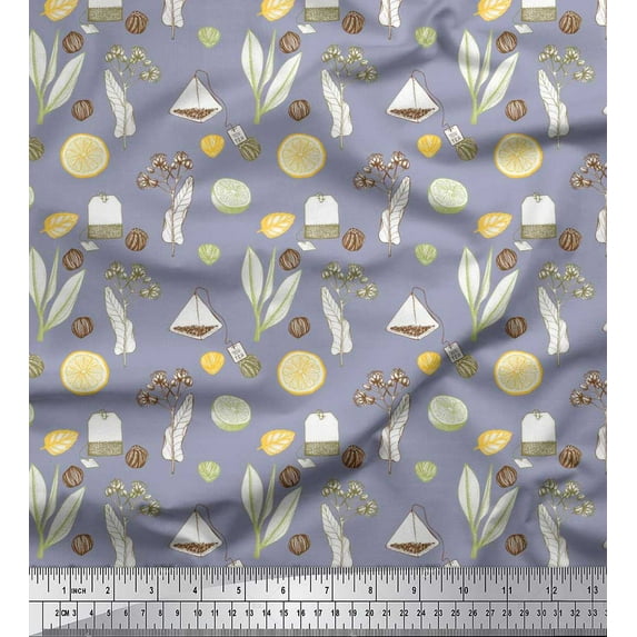 Hero image 0 of Soimoi Grey Crepe Silk Fabric Tea Bag,Herbs & Lemon Slice Vegetable Print Fabric by the Yard 42 Inch Wide, 0 of 1
