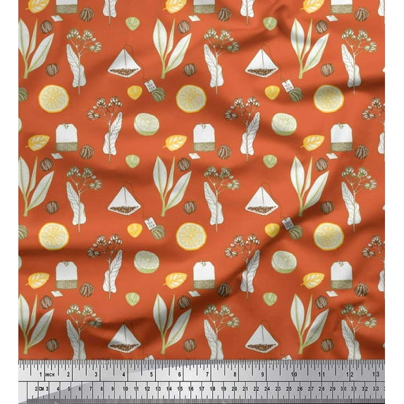 Hero image 0 of Soimoi Orange polyester Crepe Fabric Tea Bag,Herbs & Lemon Slice Vegetable Decor Fabric Printed Yard 52 Inch Wide, 0 of 1
